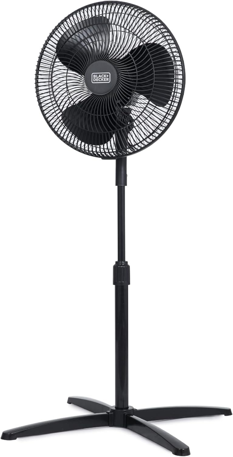 BLACK+DECKER 16-Inch Pedestal Fan, BFP16MXB, Oscillating Fan for Home and Office, Standing Fan with 3 Speed Settings, Height Adjustable Floor Fan with Adjustable Fan Head Tilt, Black